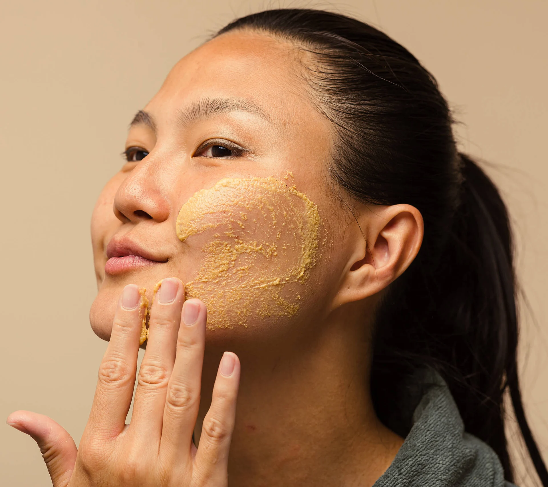 Për heqje të butë të qelizave të vdekura, merr pak nga ky pastrues i këndshëm me aromë kokoshkash në gishta, hidh pak ujë në pëllëmbë të dorës dhe punoji bashkë sa të kthehen në pastë. Kur të jesh kënaqur me masën, masazhoje në fytyrë e trup përpara se ta shpëlash butësisht.