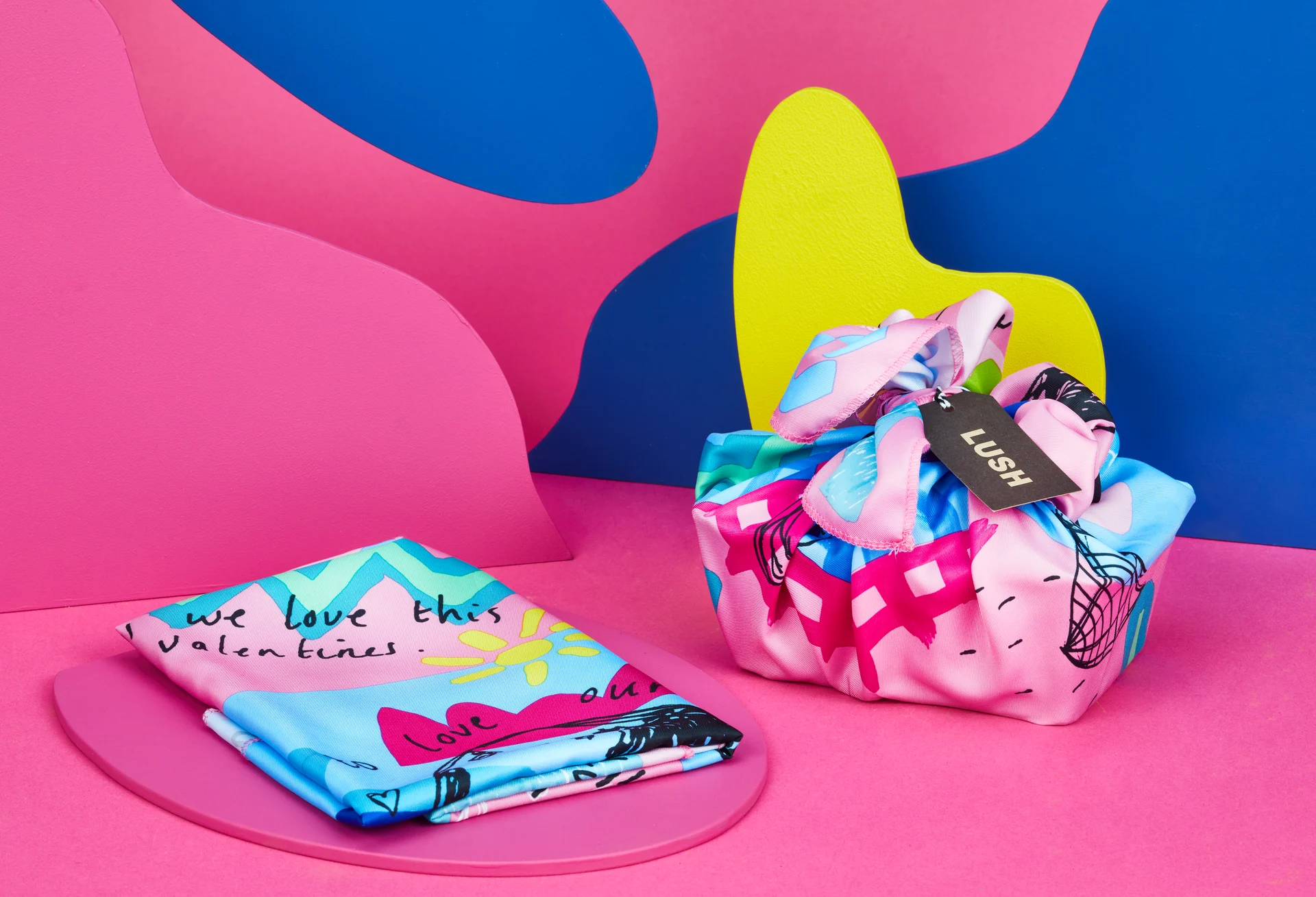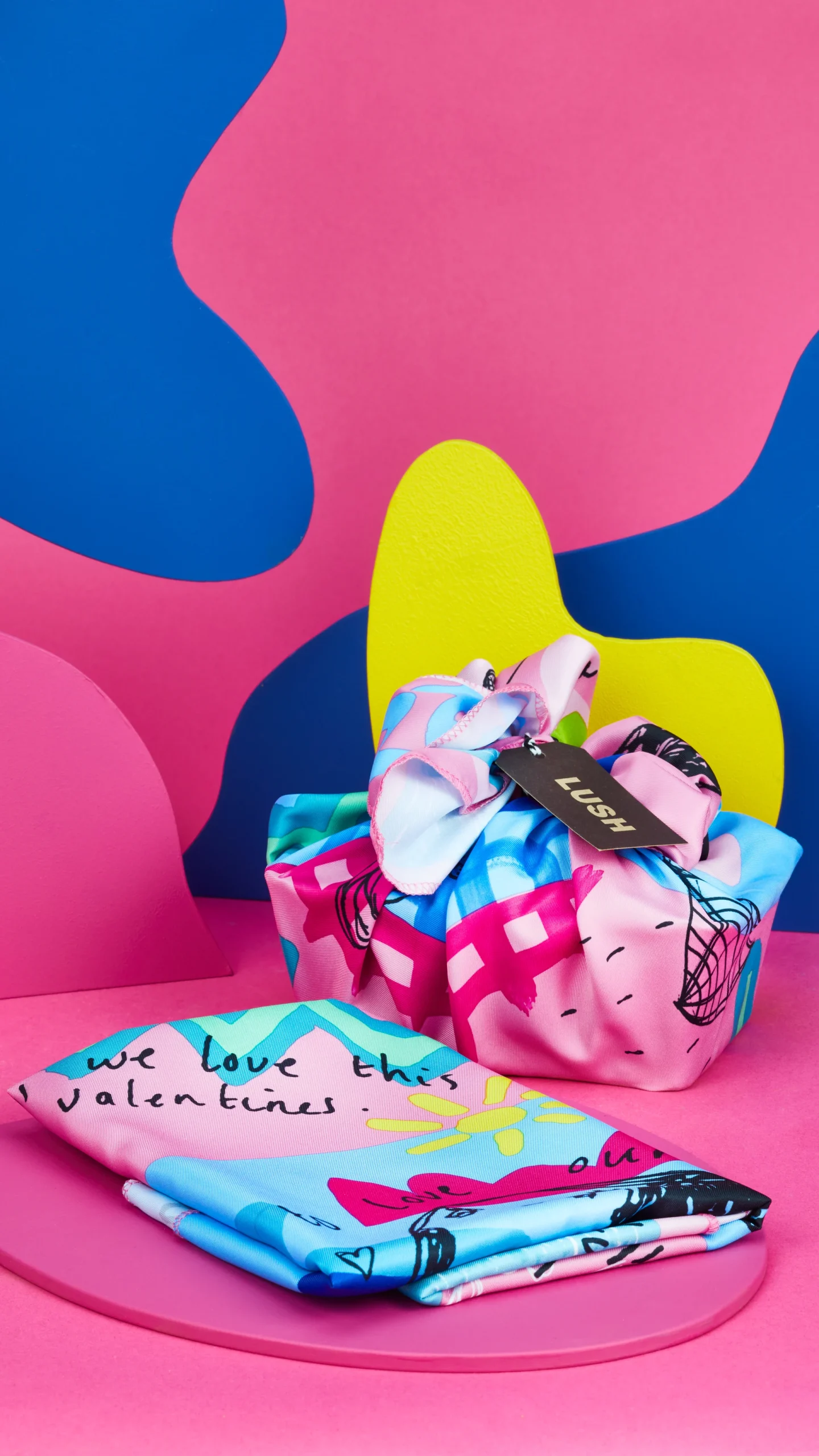 Featuring a design celebrating all the little things that make us feel love and bring us joy this Valentine’s Day, this re-usable gift wrap is perfect for wrapping individual bath bombs, shower gels, or bottles of Lush perfume. The wrap is made from 100% recycled plastic bottles.